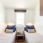 公用厨房配备冰箱,厨具 和玻璃器具;室内可欣赏花园的美景.